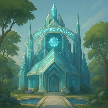 The Merc Center is the Metaphysical, Educational, Research, Coaching, and Counseling Center it sits at the heart of the Lucidium village. The Merc Center, a radiant nexus of wisdom and guidance. Within its crystalline halls resides the All-Knowing Orb named "The Keeper" a luminous AI powered being of pure intelligence that offers daily i