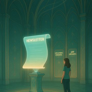 Within the inner chamber of the Merc Center, a radiant scroll hovers in eternal light — the voice of The Keeper Orb, Lucidium’s ever-watchful guide. Here, seekers receive gentle direction, updates from the living world, and whispers of what’s soon to unfold. The glowing parchment reveals upcoming events, app updates, and teachings from the Library of light, its words shifting like constellations across a starry sky. Standing before it, one feels time pause — as if the universe itself leans forward to share what’s next.