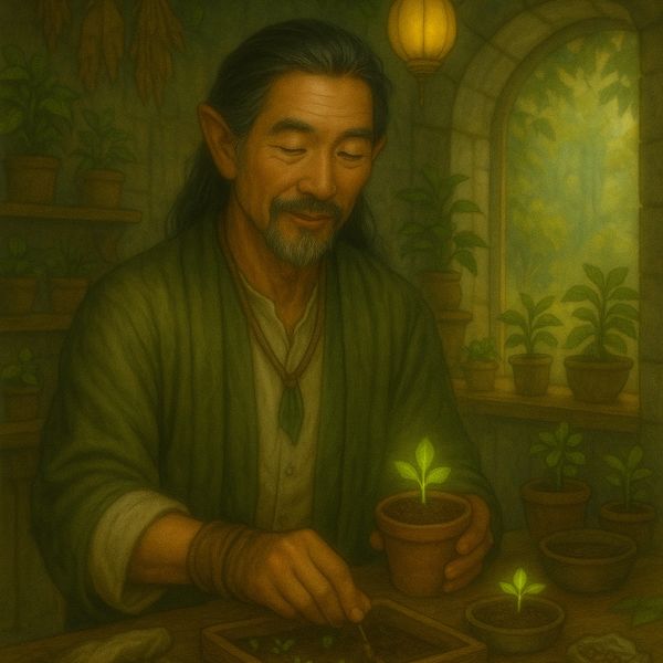 Every seed he gifts or sells holds a whisper of his wisdom, growing not only into herbs and blooms, but into lessons of patience, balance, and creation itself. Those who visit Kaien often leave with more than seeds — they carry a renewed understanding that growth, like magic, begins from within.